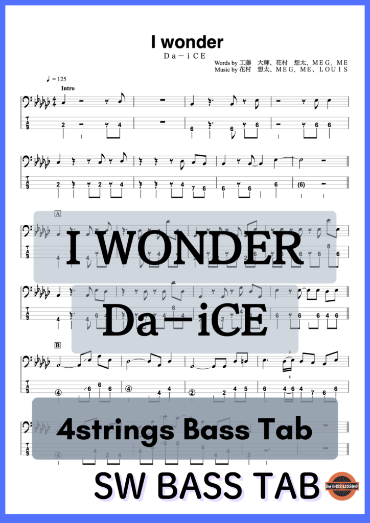 【I WONDER】Da-iCE『ベースTAB譜』☆4弦ベース対応