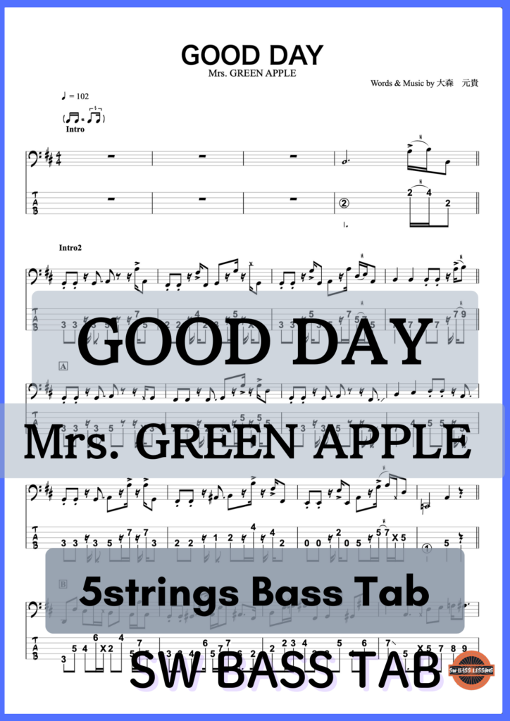 【GOOD DAY】Mrs. GREEN APPLE『ベースTAB譜』☆5弦ベース対応