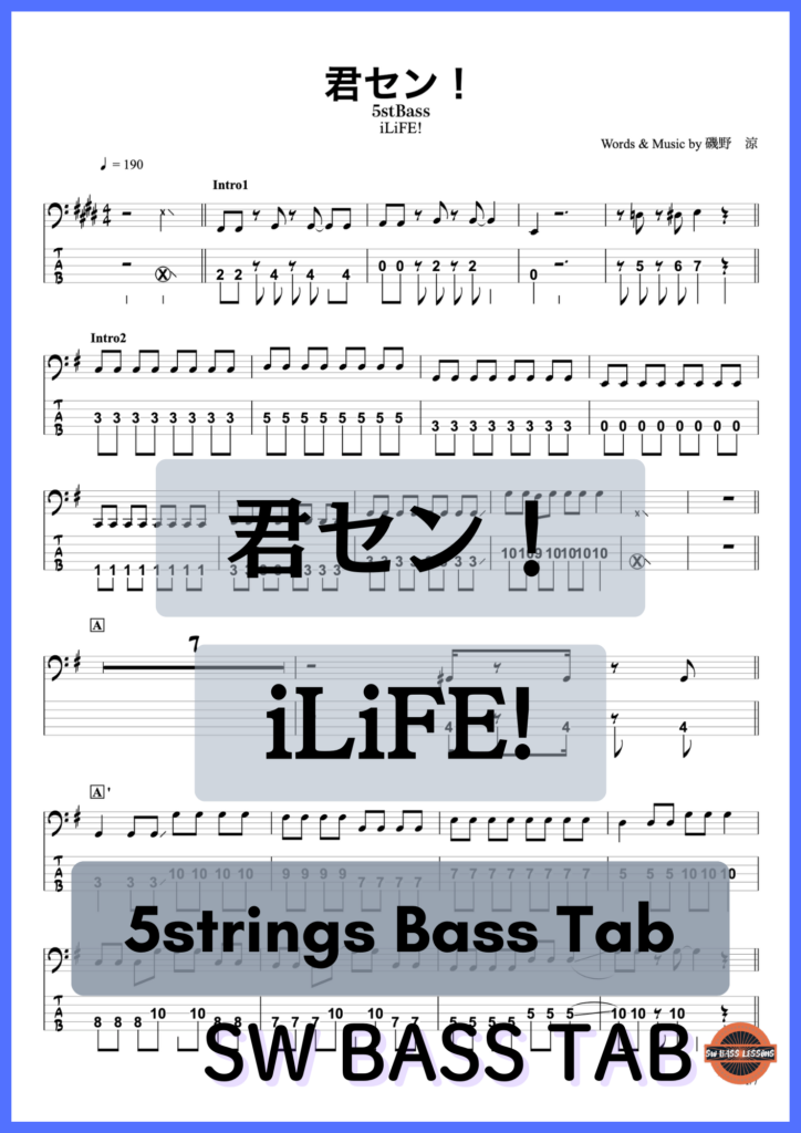 【君セン!】iLiFE!『ベースTAB譜』☆5弦ベース対応