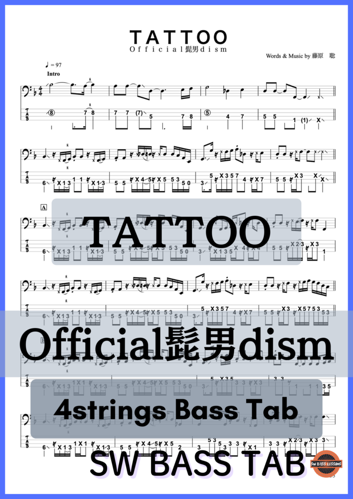 【SOULSOUP】Official髭男dism『ベースTAB譜』☆4弦ベース対応
