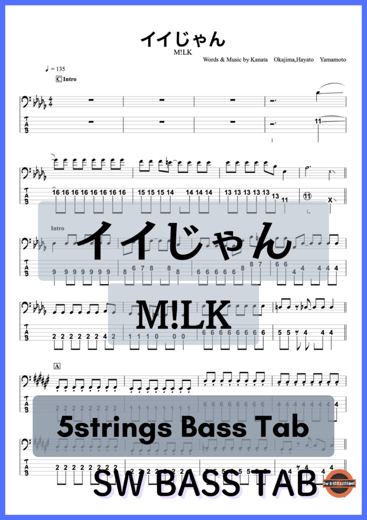 【イイじゃん】M!LK『ベースTAB譜』☆5弦ベース対応