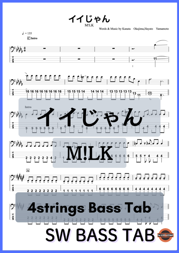 【イイじゃん】M!LK『ベースTAB譜』☆4弦ベース対応
