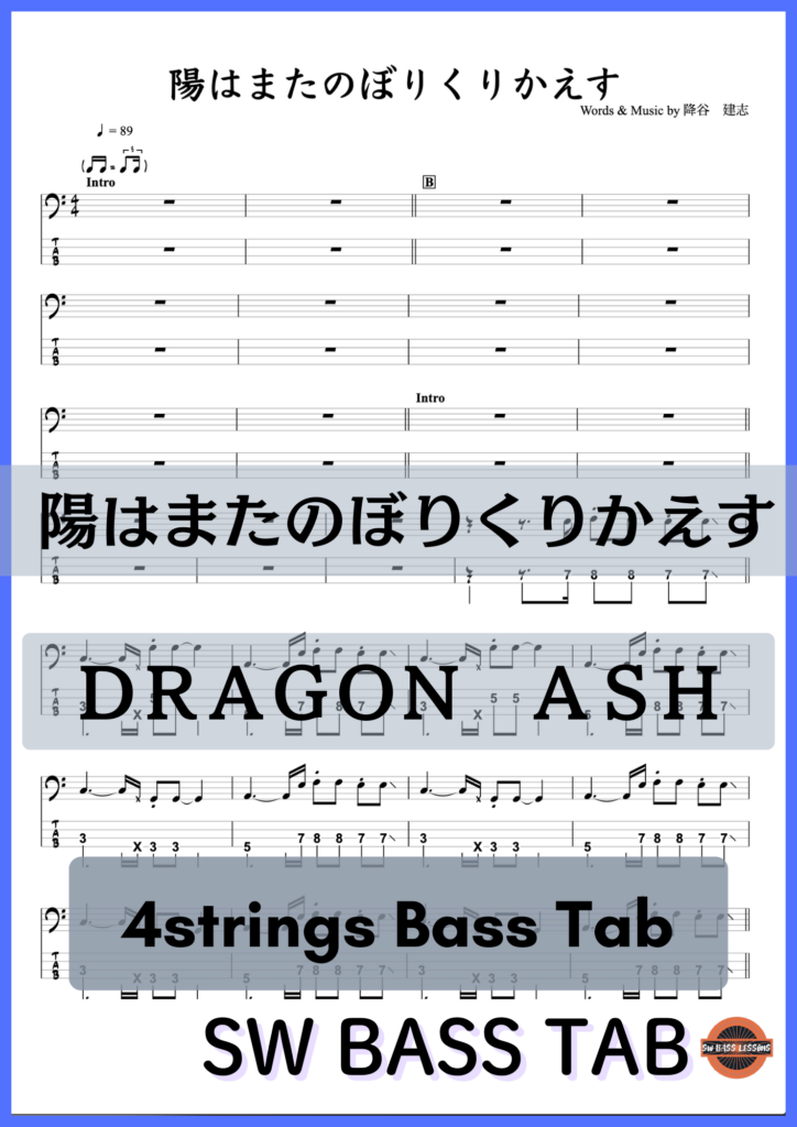 【陽はまたのぼりくりかえす】DRAGON ASH『ベースTAB譜』☆4弦ベース対応