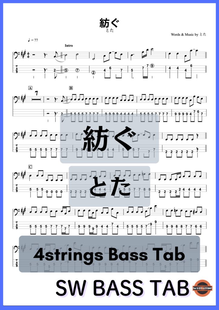 【紡ぐ】とた『ベースTAB譜』☆4弦ベース対応
