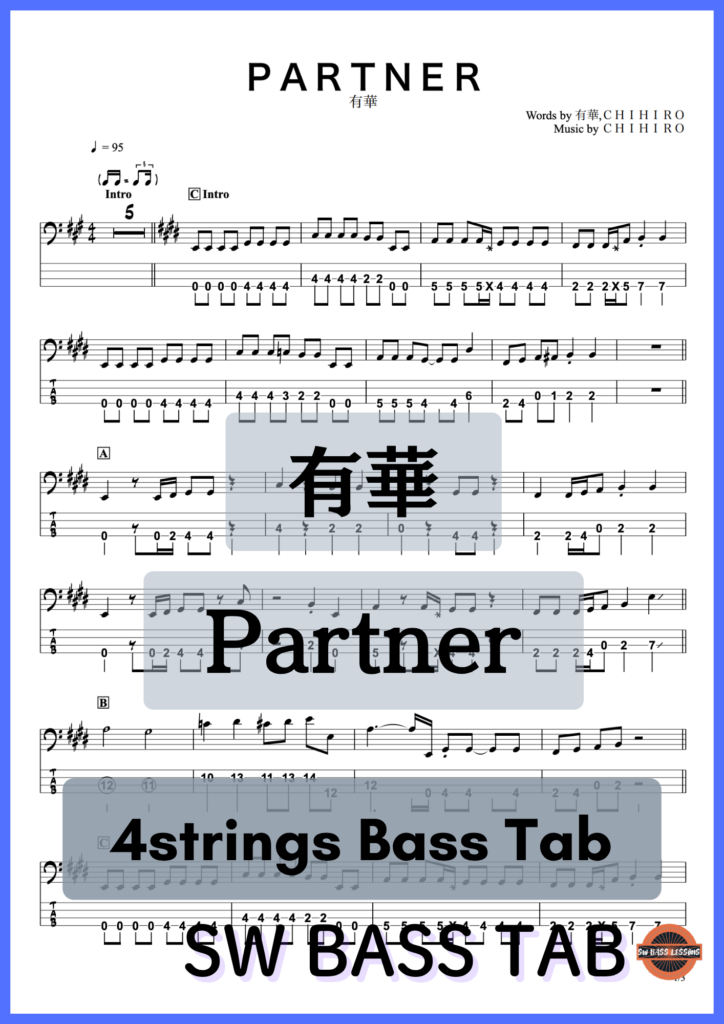 【Partner】有華『ベースTAB譜』☆4弦ベース対応