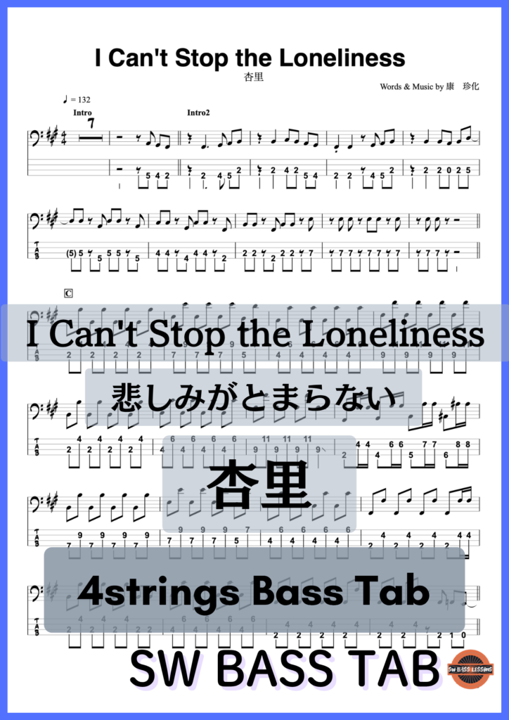 【I Can’t Stop the Loneliness 悲しみがとまらない】杏里『ベースTAB譜』☆4弦ベース対応