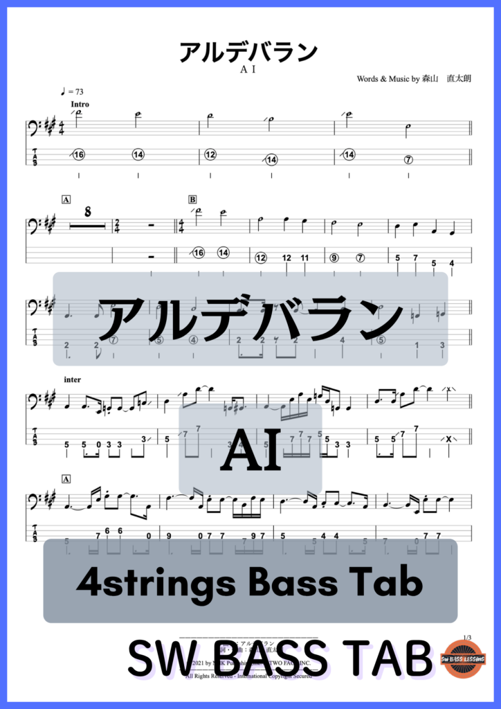 【アルデバラン】AI『ベースTAB譜』☆4弦ベース対応