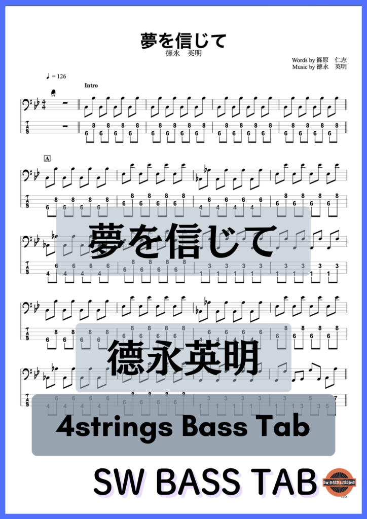 【夢を信じて】德永英明『ベースTAB譜』☆4弦ベース対応