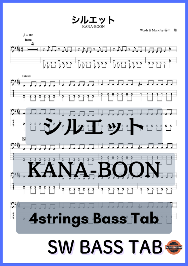 【シルエット】KANA-BOON『ベースTAB譜』☆4弦ベース対応