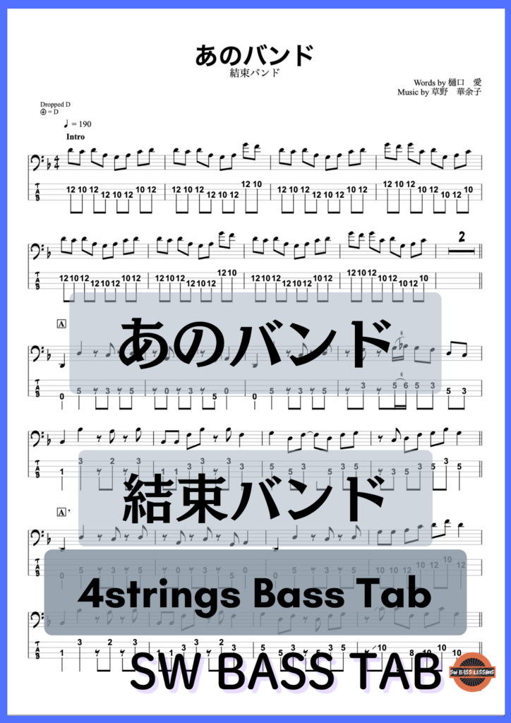 - 結束バンドさんの【あのバンド】の『ベースTAB譜』☆4弦ベース対応です!