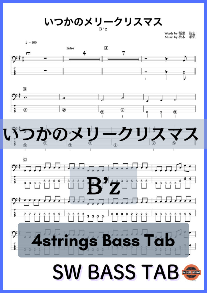 - B’zさんの【いつかのメリークリスマス】の『ベースTAB譜』☆4弦ベース対応です!