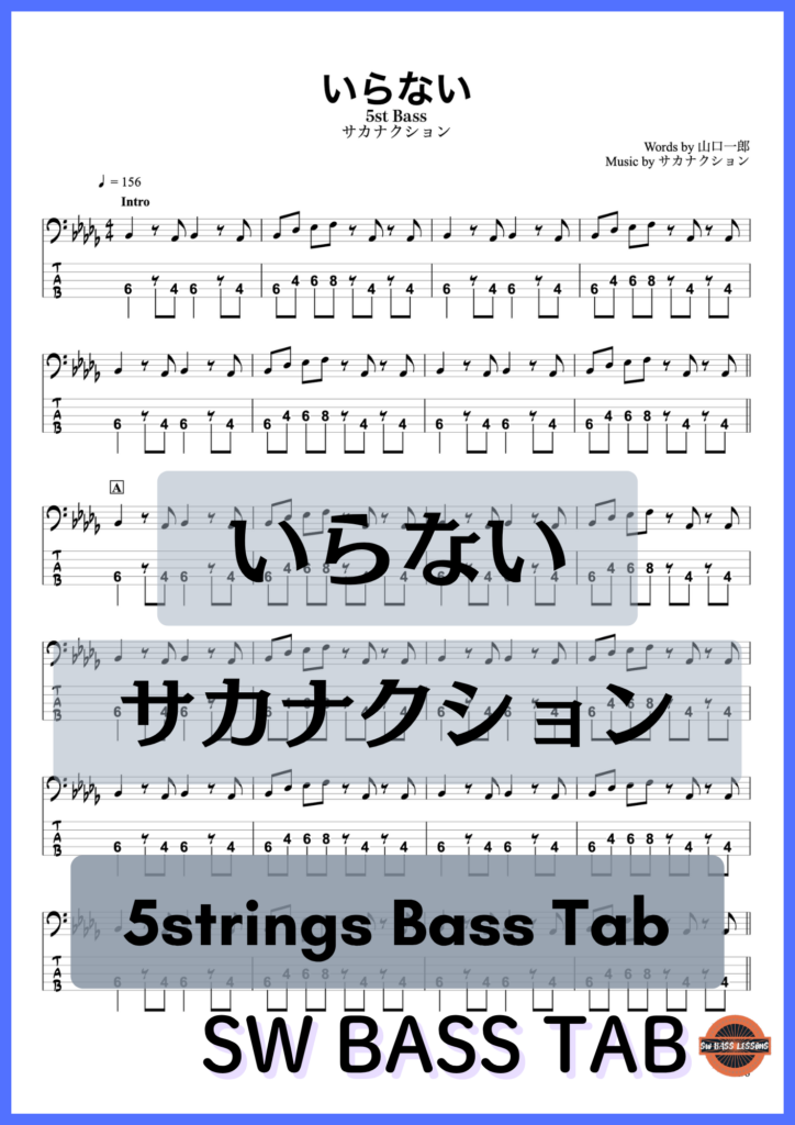 - サカナクションさんの【いらない】の☆5弦ベース対応『ベースTAB譜』です!