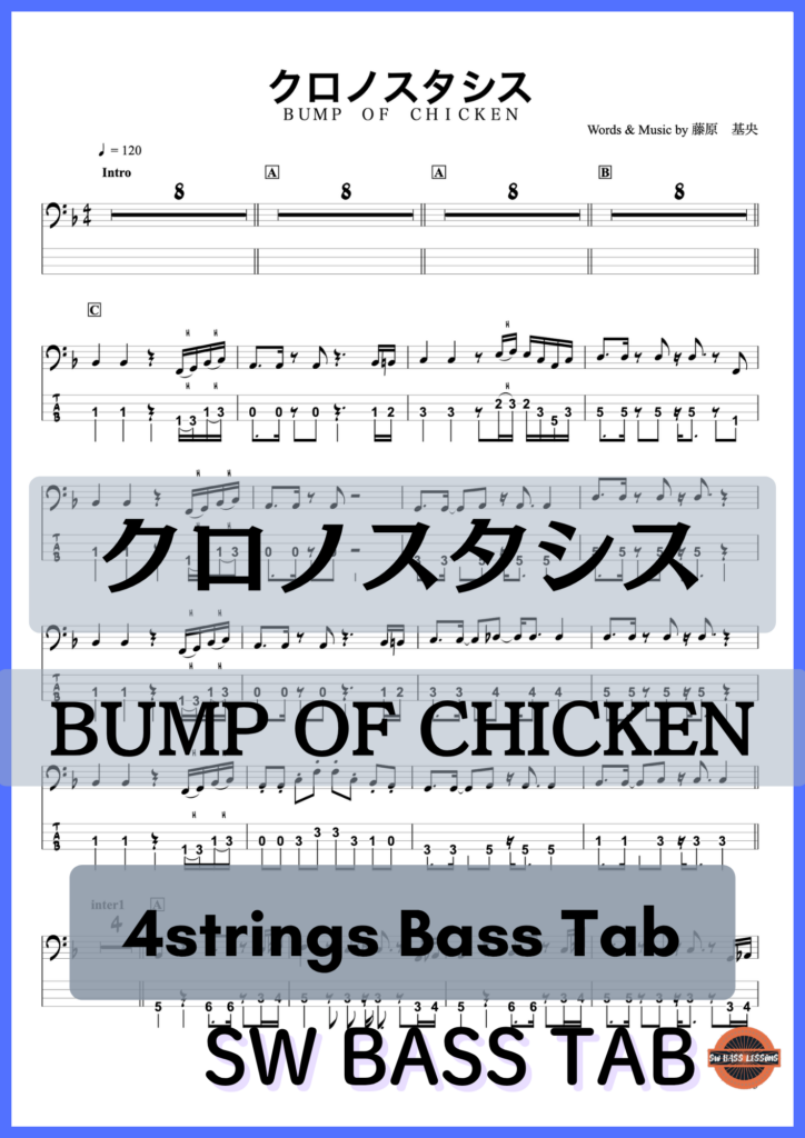 - BUMP OF CHICKENさんの【クロノスタシス】の『ベースTAB譜』☆4弦ベース対応です!