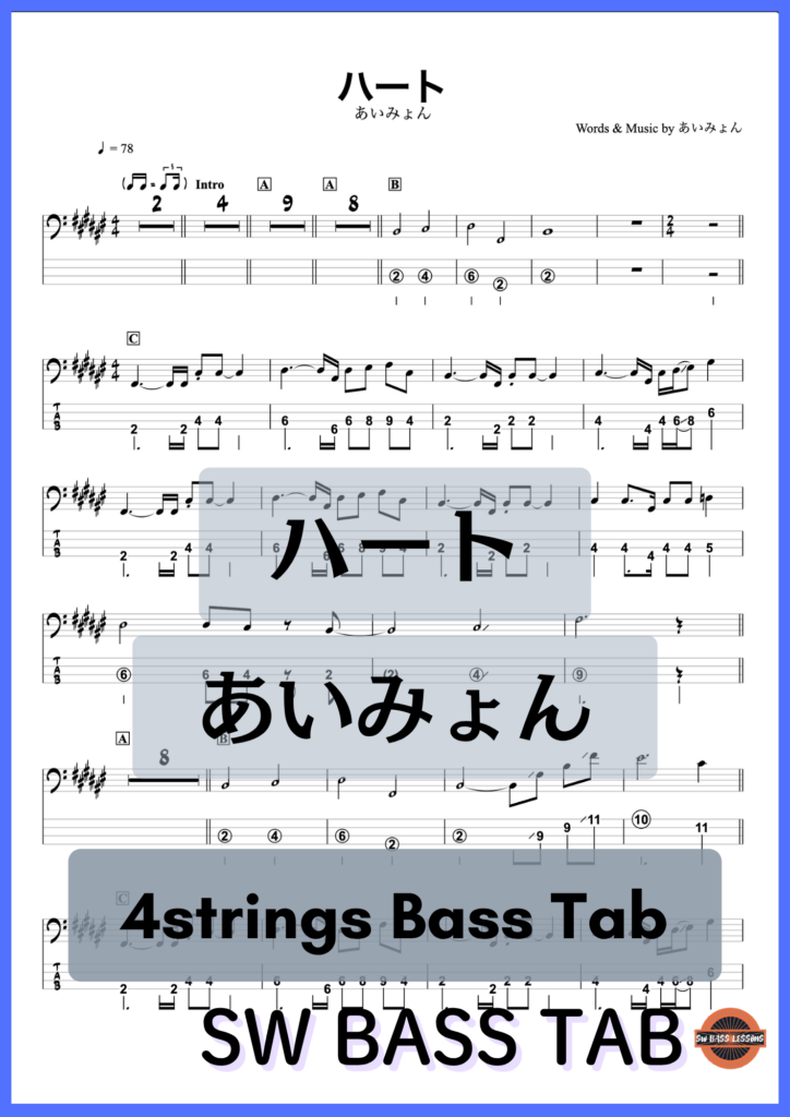 - あいみょんさんの【ハート】の『ベースTAB譜』☆4弦ベース対応です!
