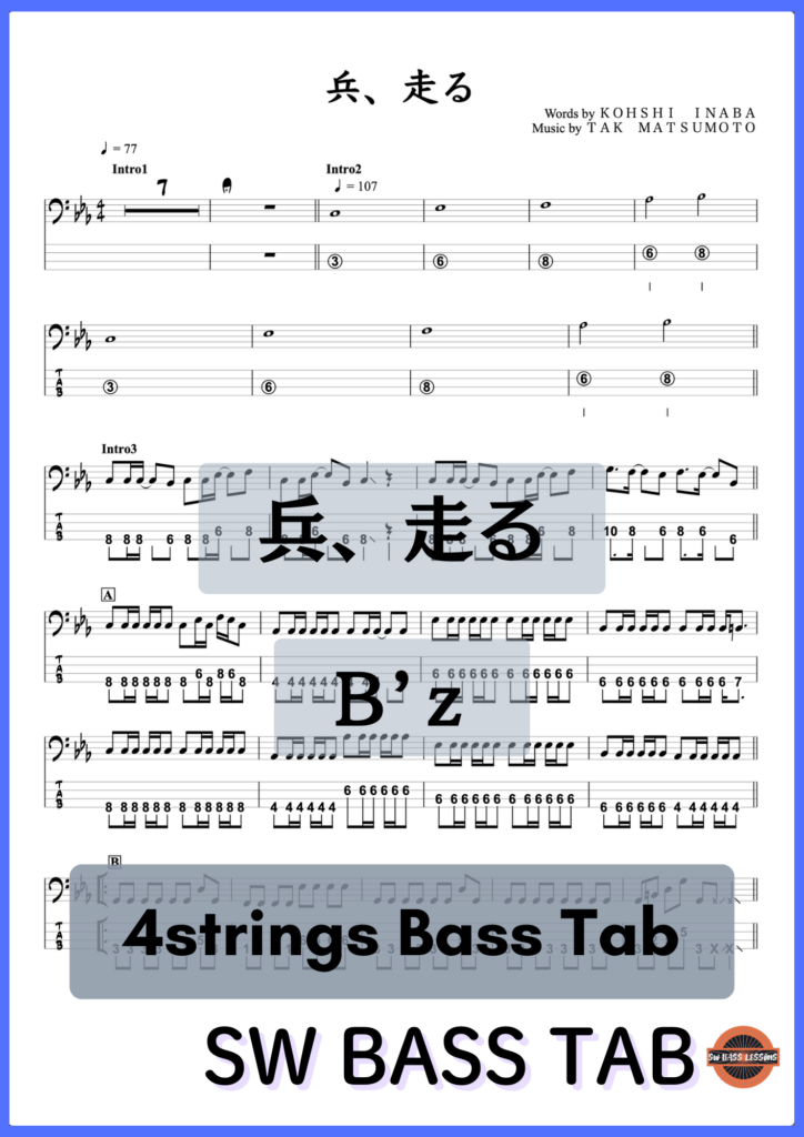 - B’zさんの【兵、走る】の『ベースTAB譜』☆4弦ベース対応です!