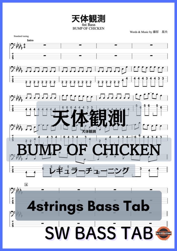 - BUMP OF CHICKENさんの【天体観測】の『ベースTAB譜』☆4弦ベース対応です!