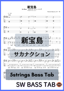 • 原曲は5弦ベースの音域ですがこちらの譜面は原曲のイメージをそこなわないように4弦レギュラーチューニングベースで弾ける ように記譜してあります。