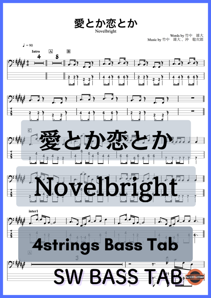 • Novelbrightさんの【愛とか恋とか】の『ベースTAB譜』☆4弦ベース対応です!