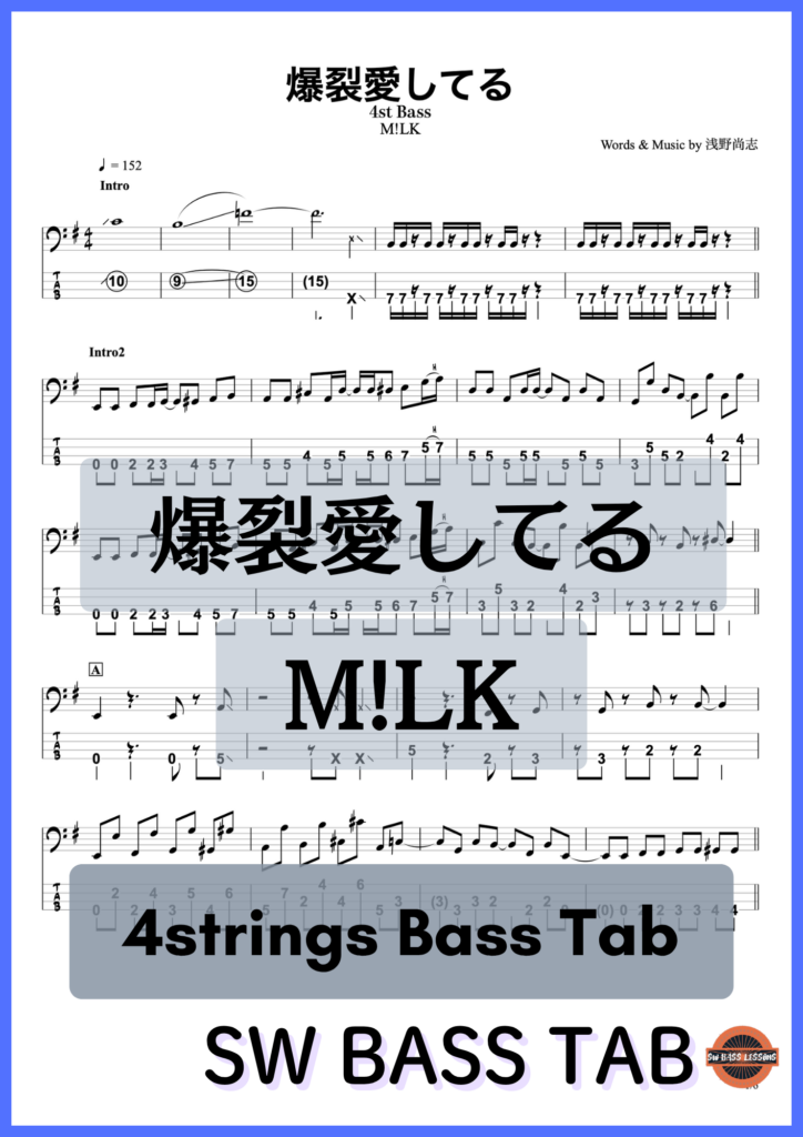 Piascoreで購入する ¥380で購入する 決済方法 kokomuで購入する ¥380で購入する 決済方法 MyMusicSheetで購入する If you purchase from outside Japan. 決済方法 Piascoreで購入する ¥380で購入する 決済方法 kokomuで購入する ¥380で購入する 決済方法 MyMusicSheetで購入する If you purchase from outside Japan. 決済方法 ベースTAB楽譜情報曲名 爆裂愛してるアーティスト M!LKジャンル Pops難易度 中級strings 4strings M!LKさんの【爆裂愛してる】の『ベースTAB譜』☆4弦ベース対応です! ☆4弦ベース用(レギュラーチューニング)の譜面です。 ☆TABの数字を見やすく大きくしてあります。 ☆原曲をもとに採譜し、弾きやすい運指で記譜してあります。 ぜひ楽しんで弾いて頂けたらと思います! アイドル M!LK ポップス 中級 4弦 【レオ】優里『ベースTAB譜』☆4弦ベース対応 【爆裂愛してる】M!LK『ベースTAB譜』☆5弦ベース対応 関連記事 【いらない】サカナクション『ベースTAB譜』☆5弦ベース対応 2026年3月28日 【いらない】サカナクション『ベースTAB譜』☆4弦ベース対応 2026年3月28日 【白銀】LiSA 『ベースTAB譜』☆4弦ベース対応 2026年3月28日 【アルデバラン】AI『ベースTAB譜』☆4弦ベース対応 2026年3月28日 【もしも命が描けたら】YOASOBI『ベースTAB譜』☆4弦ベース対応 2026年3月28日 【いつかのメリークリスマス】B’z『ベースTAB譜』☆4弦ベース対応 2026年3月28日 【BUTTER】BTS『ベースTAB譜』☆4弦ベース対応 2026年3月28日 【ハート】あいみょん『ベースTAB譜』☆4弦ベース対応 2026年3月28日