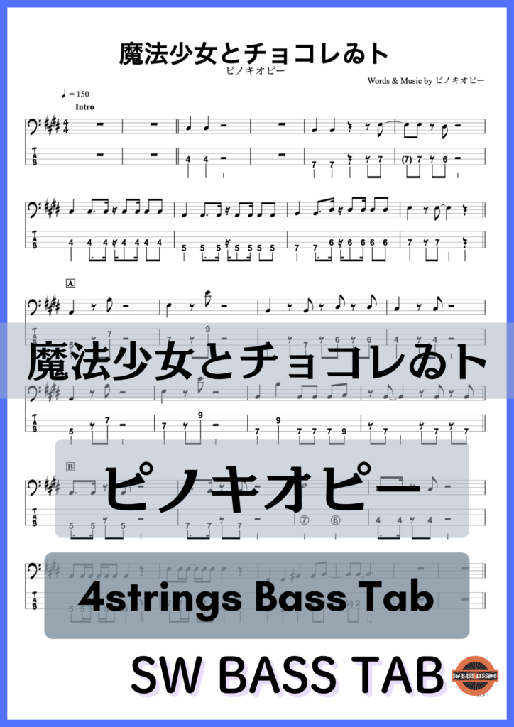 - ピノキオピーさんの【魔法少女とチョコレゐト】の『ベースTAB譜』☆4弦ベース対応です!