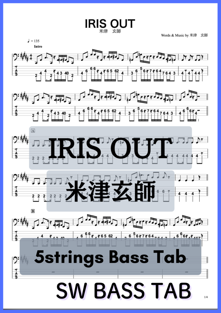 - 米津玄師さんの【IRIS OUT】の☆5弦ベース対応『ベースTAB譜』です!