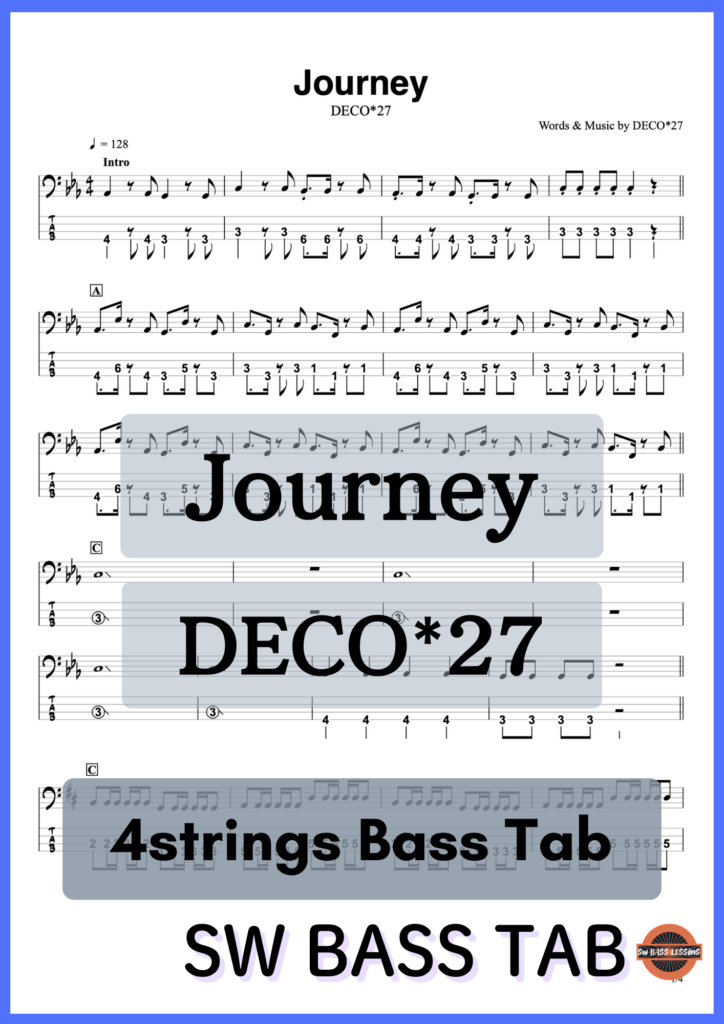 • DECO*27さんの【Journey】の『ベースTAB譜』☆4弦ベース対応です!