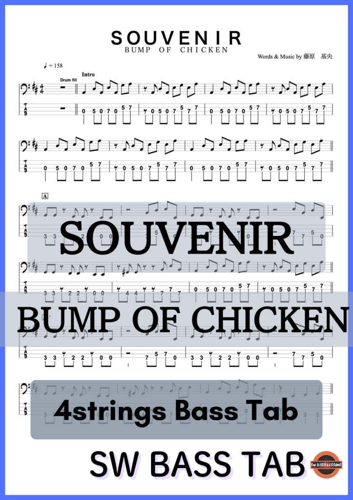 【SOUVENIR】BUMP OF CHICKEN『ベースTAB譜』☆4弦ベース対応