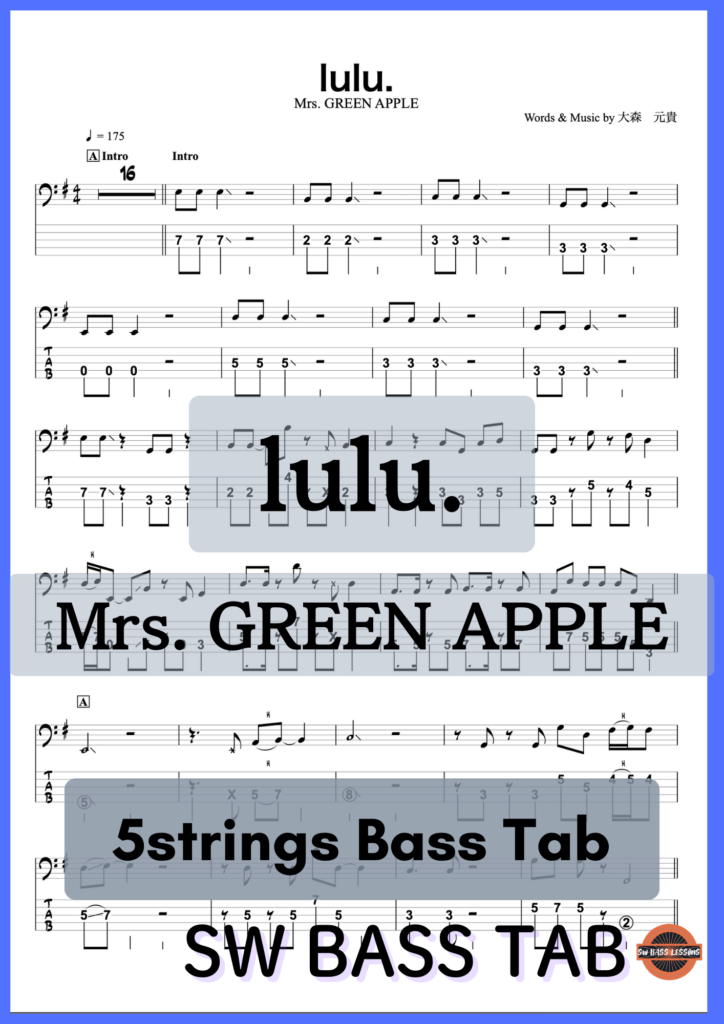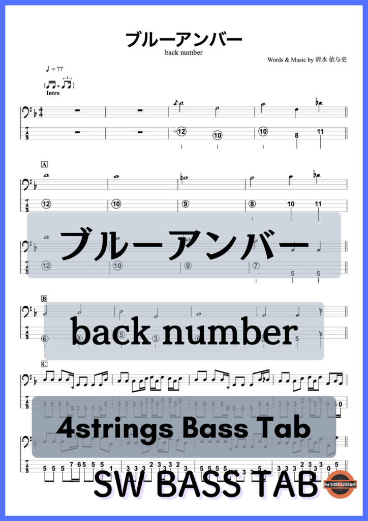 【ブルーアンバー】back number『ベースTAB譜』☆4弦ベース対応