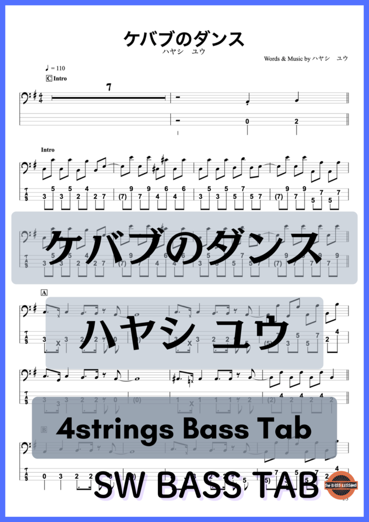 【ケバブのダンス】ハヤシ ユウ『ベースTAB譜』☆4弦ベース対応