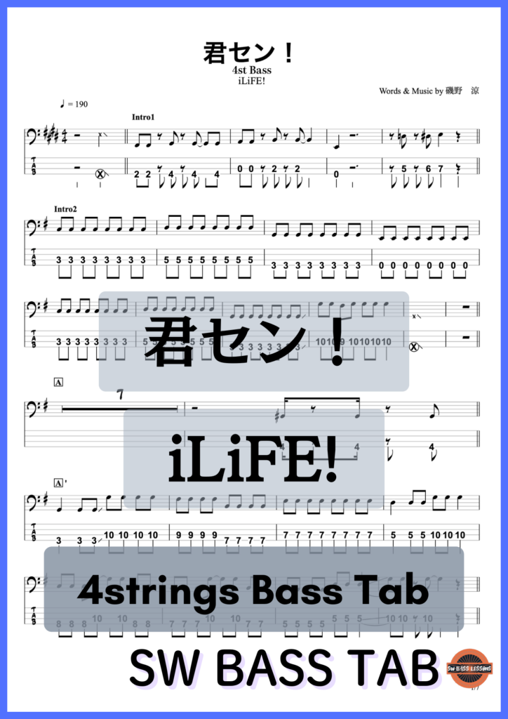 【君セン!】iLiFE!『ベースTAB譜』☆5弦ベース対応