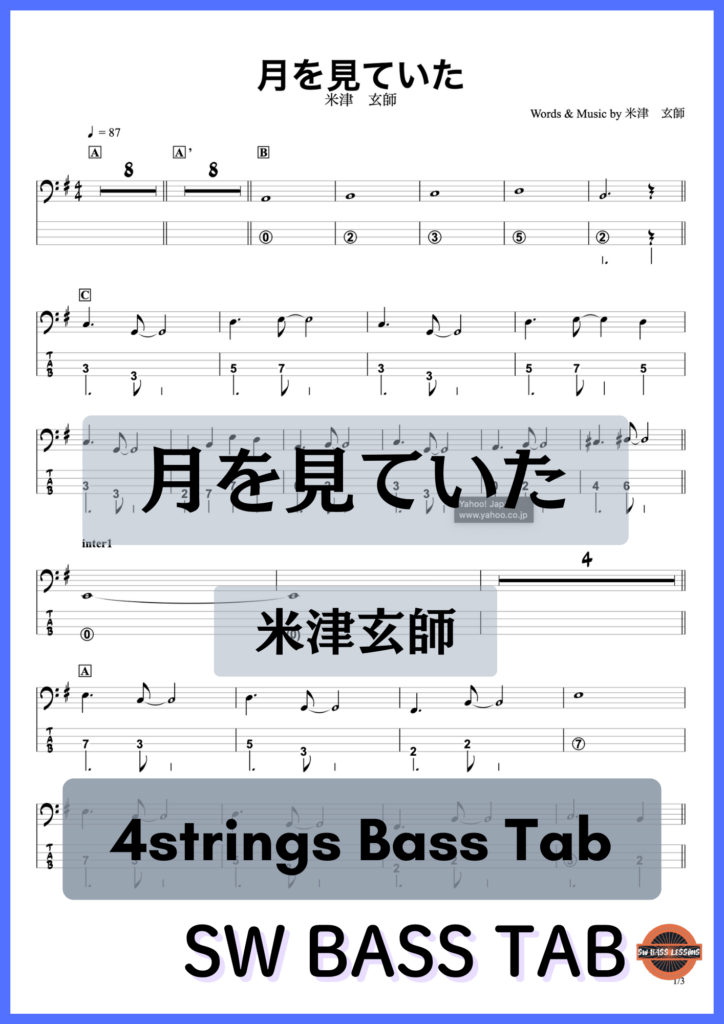 【月を見ていた】米津玄師『ベースTAB譜』☆4弦ベース対応